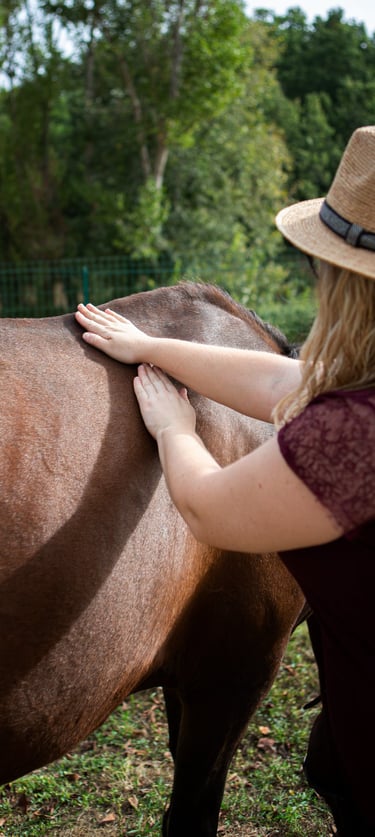 Ces soins sont exclusivement dédiés aux chevaux, quelle que soit leur activité (loisir, sport, convalescence, vieillissement…). Chaque cheval est unique, et j’adapte mon approche à sa sensibilité, son histoire et ses besoins du moment.